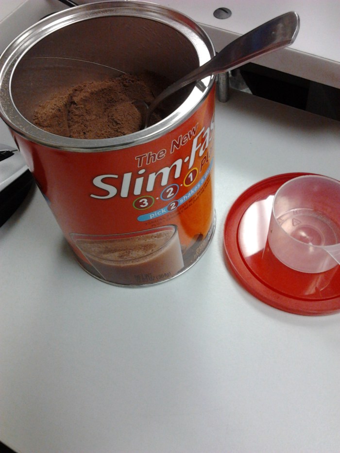 Day Three: I didn’t have any milk, so I ate Slim Fast powder out of the canister with a spoon I found in the bottom of my filing cabinet. I don’t think it was my spoon.