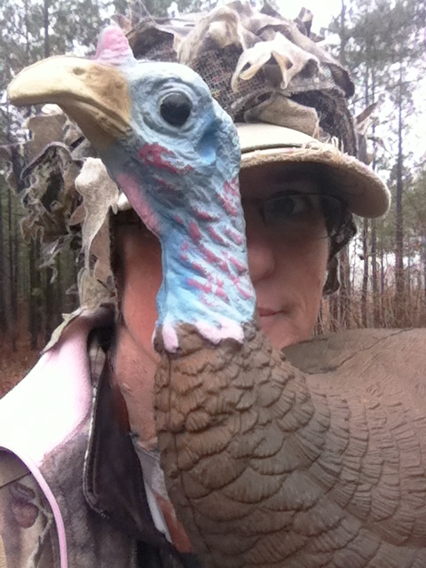 while we make turkey gobbling noises for no apparent reason. It turns out my husband and I were striking our turkey calls and waiting for a response, only to discover back at the car that we were actually answering each others’ calls. I never said we were good at this. I did find at least one turkey though, but I bet it’s gonna be a tough bird.